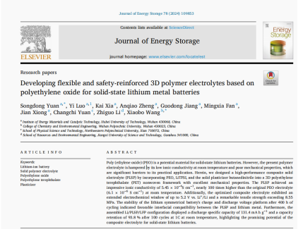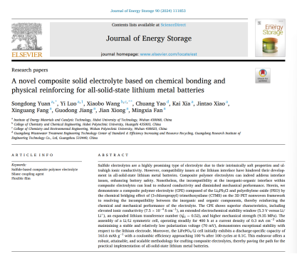 2024年以来,我校能源材料与催化研究所所长、民建委员袁颂东教授团队在固态电解质领域取得新进展,有望助力全固态锂电池及钠电池产业化进程。研究成果陆续发表在Journal of Energy Storage(IF:9.4)、Journal of Alloys and Compounds(IF:6.2)、European Polymer Journal(IF:6)等top学术期刊上。