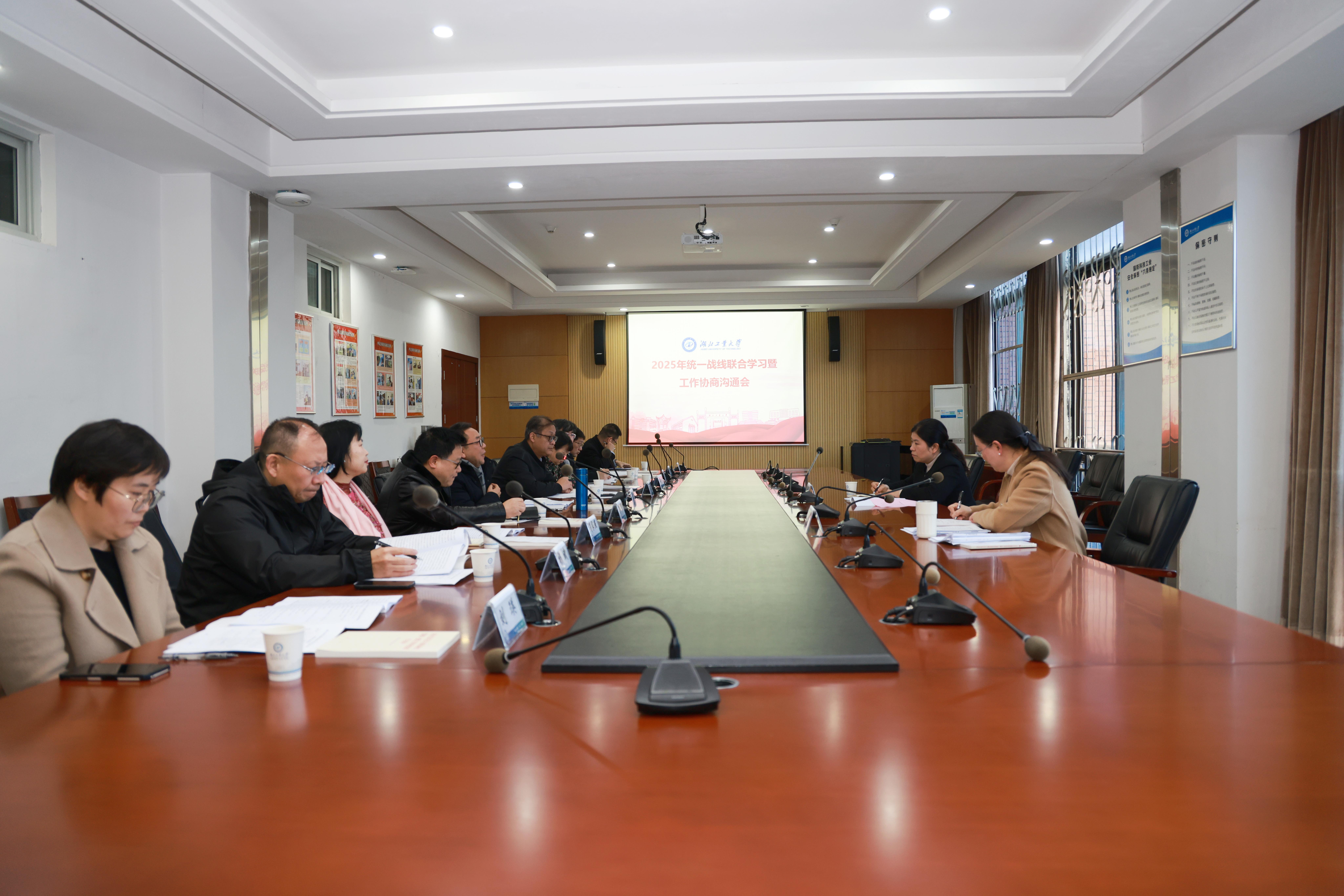 会议进行了情况通报和工作协商。党委统战部通报了2024年学校统一战线工作情况,介绍了学校2025年统一战线工作要点的起草情况、主要内容。各民主党派、统战团体负责人结合实际,对2025年统一战线工作要点提出了意见建议,并介绍了本党派(团体)2025年工作计划和主要活动安排。