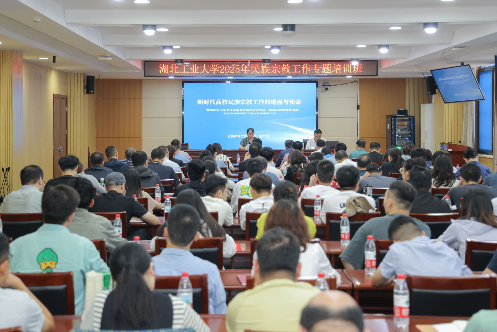 9月19日,湖北工业大学2025年民族宗教工作专题培训班在行政楼一楼会议室举行。校党委副书记、副校长桂丽出席培训班。省委教育工委组织处二级调研员陈三鸿应邀作专题辅导报告。